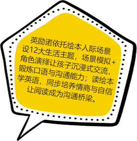 英励诺少儿英语,专注3-7岁孩子双语启蒙教育。它通过综合性阅读内容,帮助孩子建立语音意识,感受歌谣韵律,丰富英语词汇,敢于开口表达,具备日常生活中的听说交流能力和阅读能力。同时,它致力于扩宽孩子的文化视野,培养12种优良品格,全面提升孩子的综合素质。